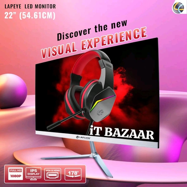 Upgrade your viewing experience with the LAPCARE LED Monitor LM22WHD from IT BAZAAR. Designed with precision and performance in mind, this 22-inch (54.61 cm) Full HD monitor combines cutting-edge technology with sleek aesthetics to deliver stunning visuals and seamless functionality. Whether you're working, gaming, or streaming your favorite content, this monitor is engineered to meet all your needs.