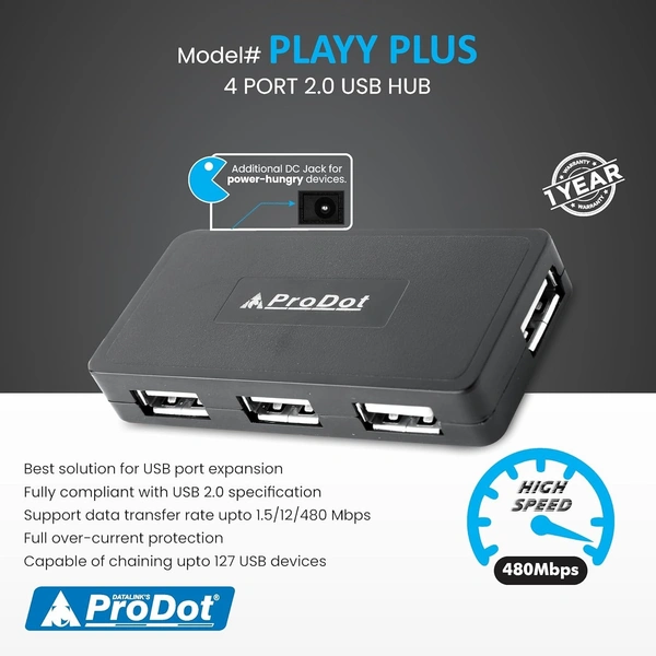 Welcome to IT BAZAAR, your trusted destination for cutting-edge tech accessories! Introducing the PRODOT USB HUB 4 Port USB 2.0, a sleek and powerful solution designed to simplify your connectivity needs. Whether you're working, studying, or gaming, this USB hub ensures seamless multitasking with its advanced features and reliable performance.