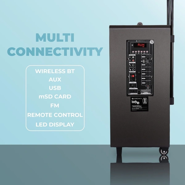 Get ready to experience high-quality sound and unmatched portability with the ZEBRONICS Banjo Trolley DJ Speaker. Designed for music enthusiasts and party lovers, this powerful 80W RMS speaker is packed with features that take your entertainment to the next level. Whether you're hosting a party, performing karaoke, or simply enjoying your favorite tunes, the ZEBRONICS Banjo has you covered.
