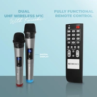 - LED Display & Wireless Mics: The sleek LED display adds a modern touch, while the included wireless microphones are perfect for karaoke nights or announcements.